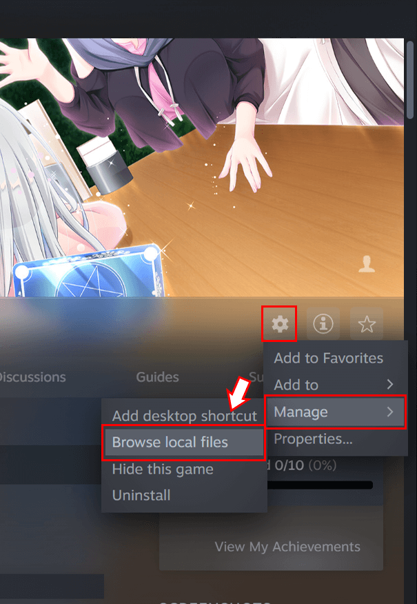 1. Open the work's page from the Steam app's library and select "Browse Local Files".