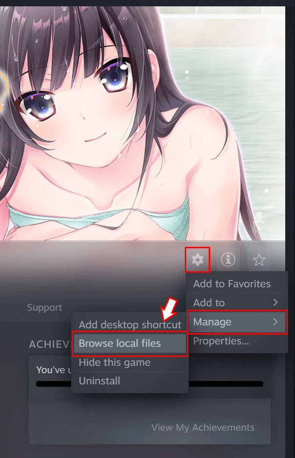 1. Open the work's page from the Steam app's library and select "Browse Local Files".